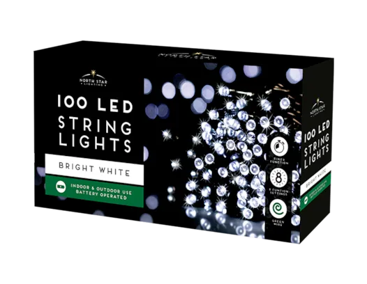 Add a glimmer to your house, office or garden with this 10 metre pack of 100 Led Battery Operated Lights.